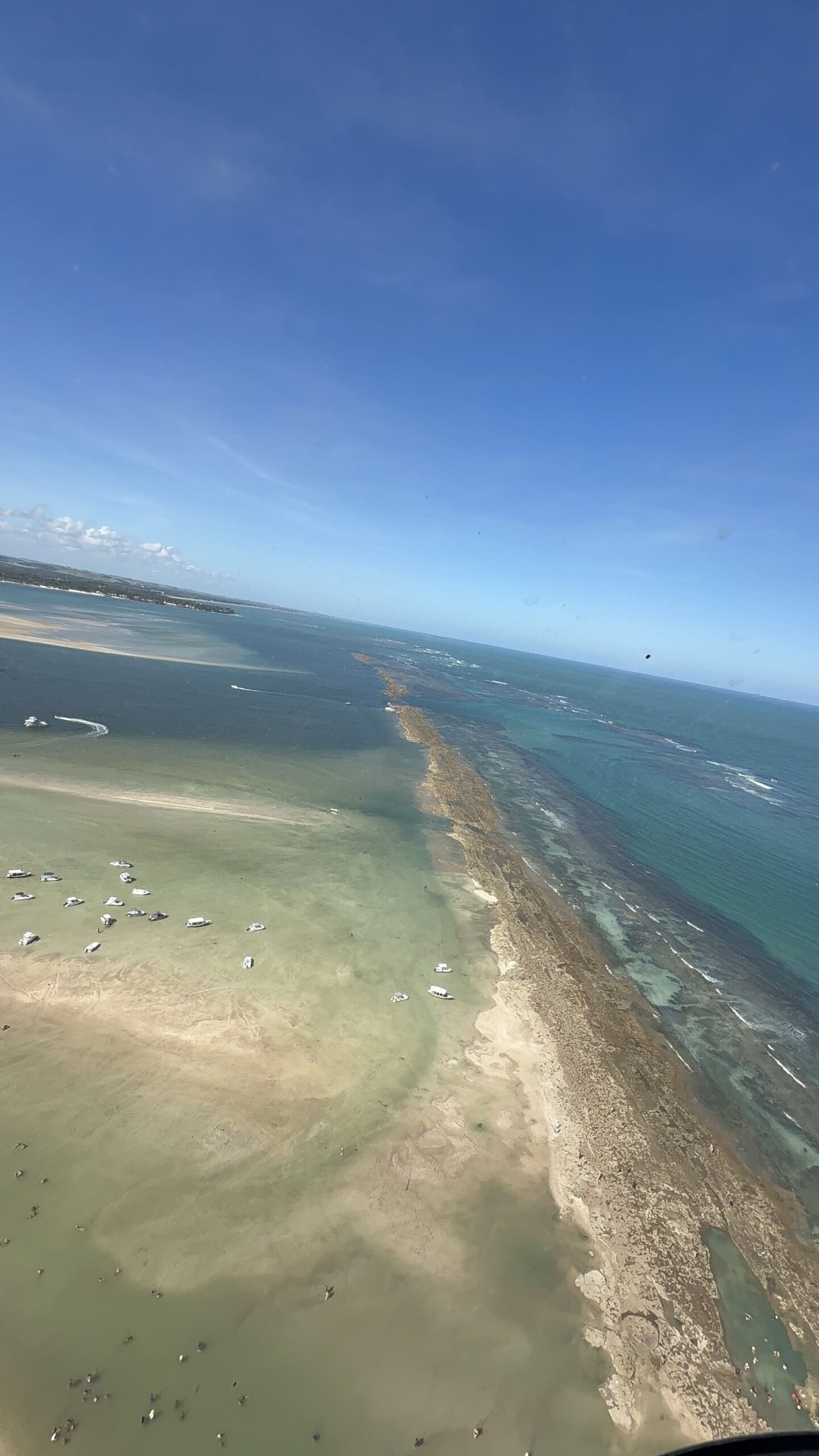 Sobrevoando: Carneiros → Tamandaré → Guadalupe → Barra de Sirinhanhém → Toquinho → Ilha de Santo Aleixo → Serrambi → Maracaípe → Porto de Galinhas → Muro Alto → São José da Coroa Grande → Maragogi → Caminho de Moisés → Antunes → Praia da Bruna.